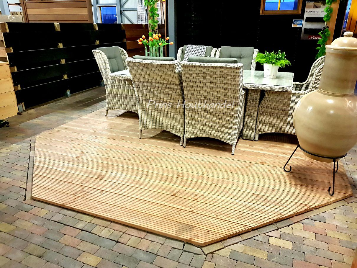 Deze vlonderplanken zijn de laatste jaren zeer populair geworden. Prins Houthandel levert Douglas vlonderplanken met een kopmaat van 28x145mm waardoor u een zeer stevige vlonder creëert. Wij hebben deze vlonderplanken standaard in ons assortiment en zijn uit voorraad leverbaar. Voor de montage van deze vlonderplanken dient u +-0,5 tot 1cm tussenruimte aan te houden en de liggers niet meer dan 60cm uit elkaar te leggen. Onze douglas vlonderplanken zijn 1 zijde geschaafd en 1 zijde geribbeld. Zie hieronder de specificaties van deze vlonderplanken.