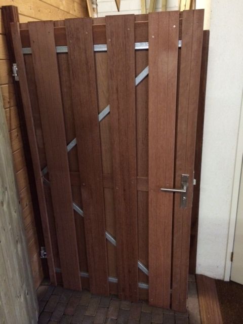 Hardhouten Tuinpoort Robuust 100x180cm stalen frame cilinderslot
