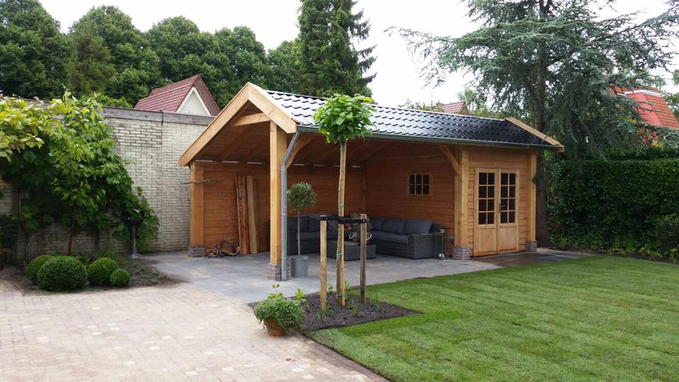 In de Beemster hebben wij al het hout mogen leveren voor dit prachtige tuinhuis met overkapping. Het geheel is gemaakt van Douglas Hout. Douglas Tuinhout is zeer geschikt voor uw overkapping, veranda of tuinhuis. Door de lange levensduur van het hout heeft u voor jarenlang plezier. De klanten uit de Beemster hebben gekozen voor een dubbel deurstel en een raam met houten roedes voor een speels uiterlijk. Op het dak liggen dakpanplaten. Voor de Houten Schutting is gekozen voor Douglas Schaaldelen, deze Douglas schuttingplanken zijn voorzien van boomschors wat een uniek uiterlijk geeft. In de Beemster kleigrond is gekozen voor Hardhouten Palen van 3 m1 lang. Douglas Hout is niet geschikt om te plaatsen in de grond.