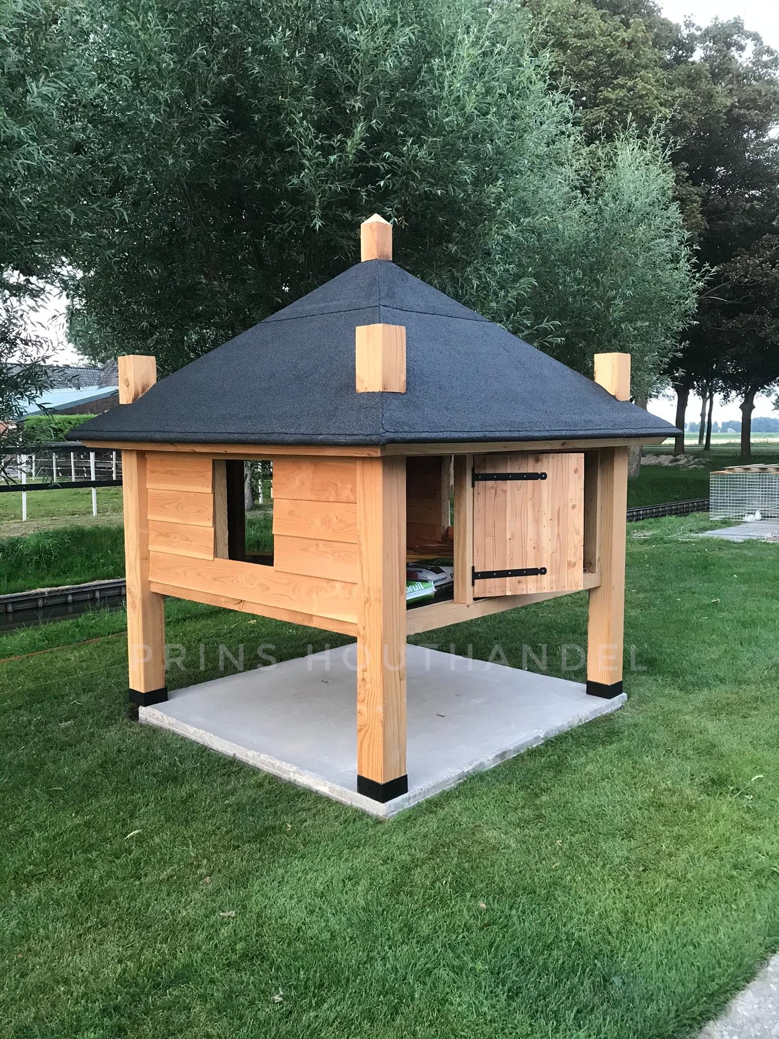 Gemaakt van Douglas hout, red cedar hout of geimpregneerd hout.
